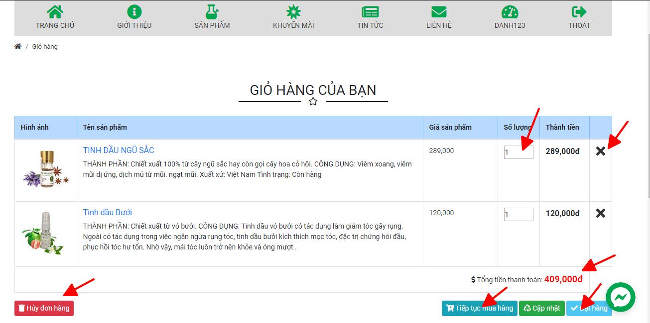 2. Bạn có thể thêm số lượng sản phẩm, hoặc xóa bỏ sản phẩm khỏi đơn hàng