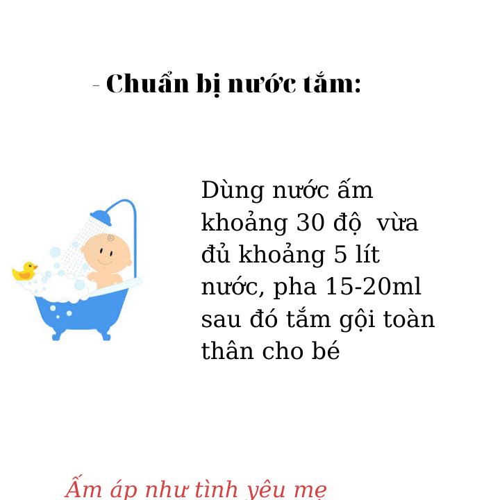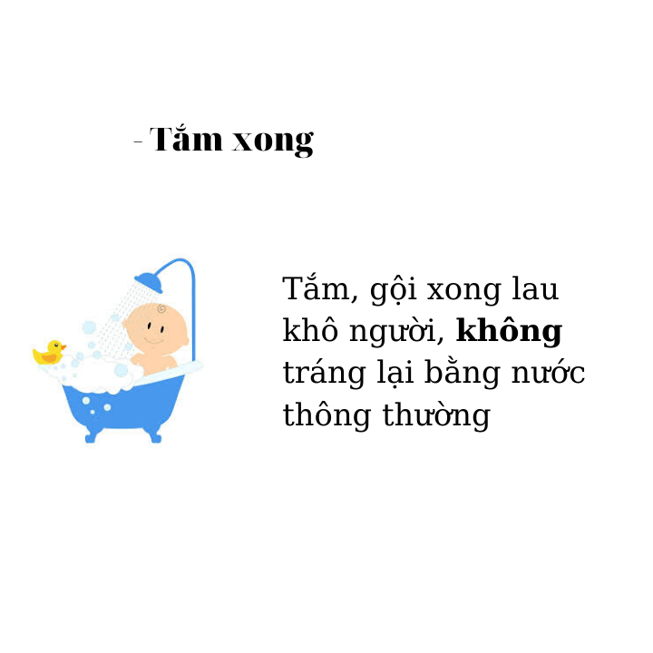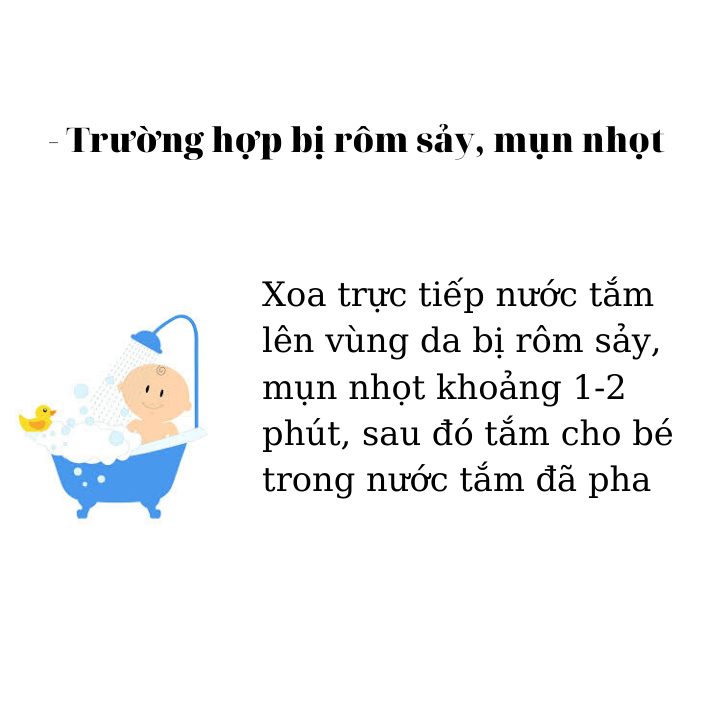 - Em bé sơ sinh, tắm hoặc ngâm mình với nước ấm, giúp các bé làm sạch và bảo vệ da, ngăn ngừa và giảm mụn nhọt, viêm da, làm mát da.